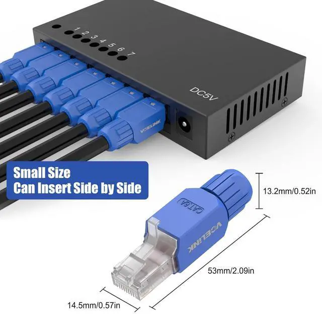 WIDE APPLICATION - Our small-sized CAT6A tool free RJ45 connector are designed to be plugged side-by-side, making them perfect for integration into wiring locations such as switches, routers, and PCs.