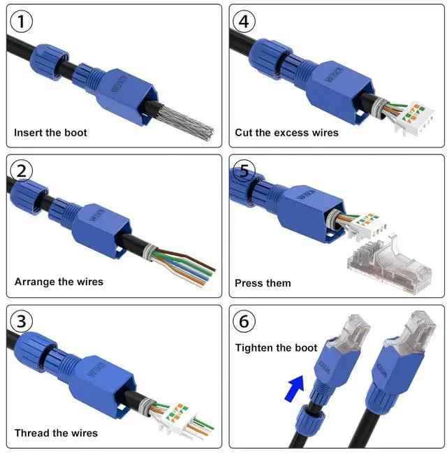 STABLE CONNECTION - The nut-type strain relief boot of this ethernet plug toolless supports network cables with a 6.0 - 7.6 mm cable jacket OD, making it easy to lock the cable and ensuring a secure connection resistant to stretching.