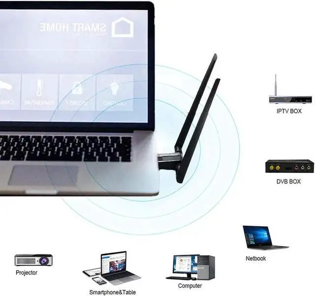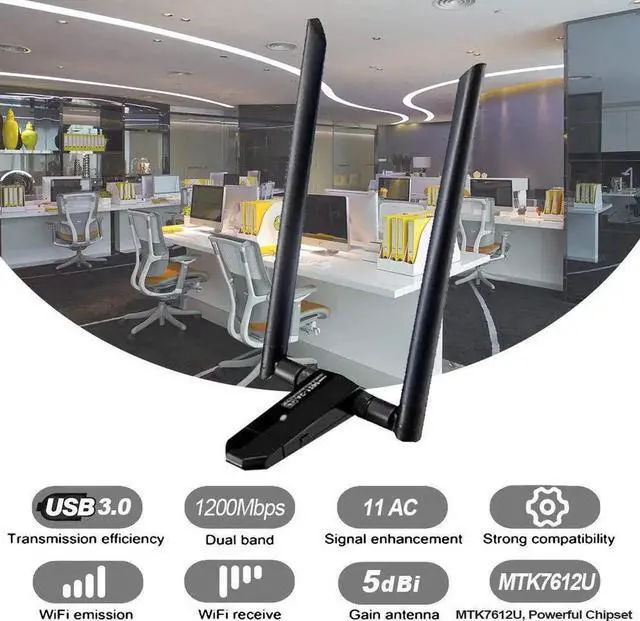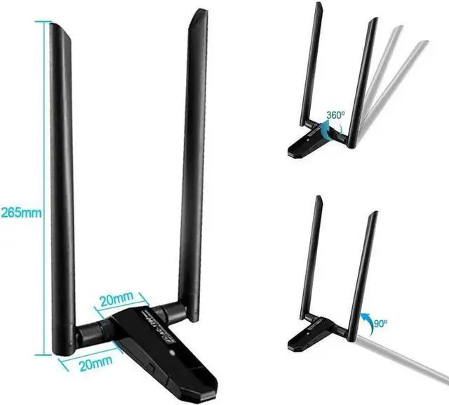?? 1200Mbps Ultra-Speed?? Up to 1200Mbps Wi-Fi speeds on 5GHz (867Mbps) or 2.4GH z (300Mbps) bands the wifi adapter provides fast speed and lag free connection for PC Laptop desktop ideal for telecommuting home office internet calling/meeting HD video/movie high quality music online gaming etc.?? 5dbi High Gain Antenna?? The 5dBi dual high-gain antenna and 360-degree and 90-degree rotation designs of the computer network adapters provide stronger signal penetration wider coverage and wireless coverage up to 100 meters. It allows you to enjoy a wifi connection without blind spots whether at home or in the office and provides excellent stability for desktops laptops and PCs.