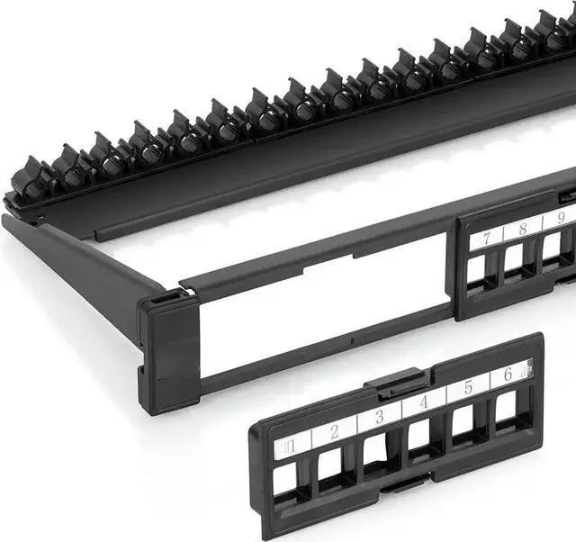 This keystone patch panel can be mounted in 19" racks or cabinets. It has 24 ports in total, which is more than enough to help you organize a group of cables so you can consolidate voice, video, and data cables in a single location.