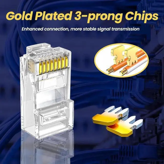 Gold-plated 3-prong chips provide you optimal performance, which allows contact to form a tighter connection with the core of the wire, so that improve the stability of signal transmission.