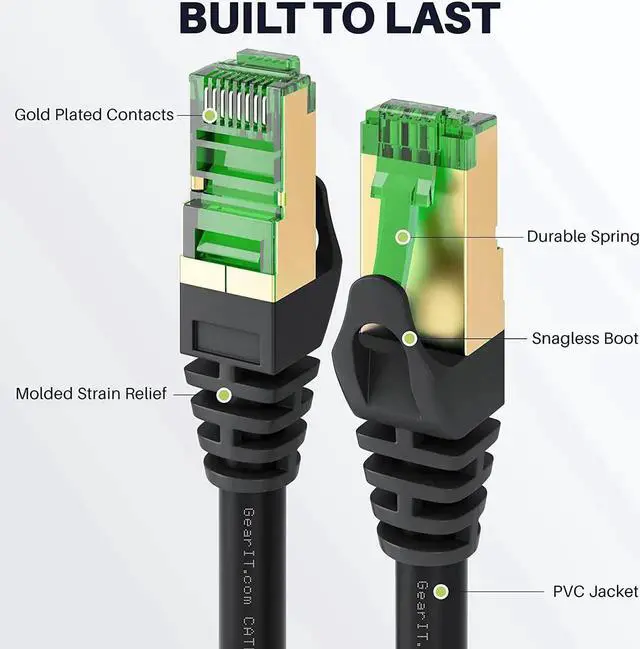 UNIVERSAL COMPATIBILITY: Our GearIT Cat7 Ethernet Cables are compatible with Cat5/Cat5e/Cat6/Cat6A/Cat7 and is suitable for extra long network cable needs such as ethernet for routers, laptops, computers, modems, gaming consoles (i. e PS4/PS5/Xbox One/Xbox 360), printers, scanners, Smart TVs, and network switches.