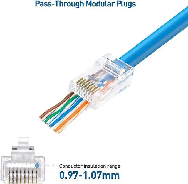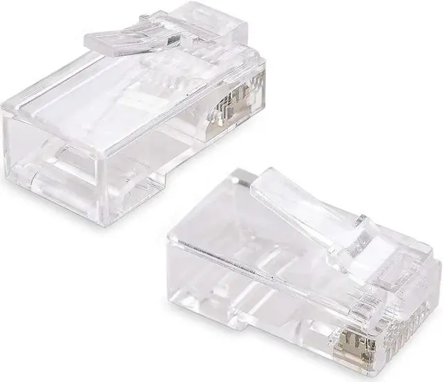 Cost effective 100-pack of Cat6 connectors provides enough connectors for a large project or multiple small jobs; Construct multiple patch cables in the perfect length for router, patch panel, or workstation applications with this crimp connector; Cat 6 crimp connectors are compatible with Cable Matters RJ45 Strain Relief Boots to protect the clip from accidental damage and bolster the integrity of the cable