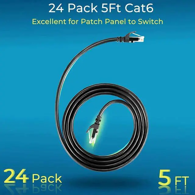 Upgrade and Clean Up RackGood size cat 6 ethernet cable 5 ft for clean wire management install. Short ethernet cable make your setup so much easier and cleaner with all same length and color. Cable patch cords is more reliable and secure than Cat5 cable network.