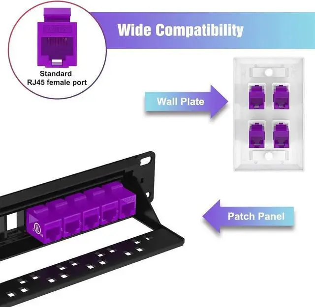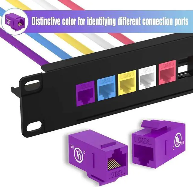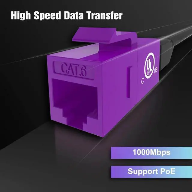 The cat6 coupler keystones support cat6/cat5e/cat5 ethernet cables. Meet Category 6 performance in compliance with the T568B and T568A standards and support PoE.