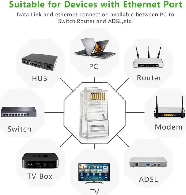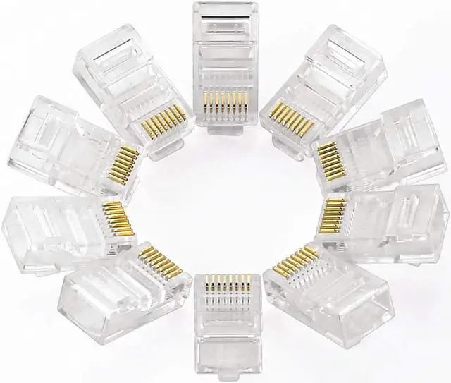 WHAT YOU GET: Package include 50 pieces Gold plated leads RJ45 Modular Plug Network Connector for UTP, Cat5, Cat5e, Solid/Stranded Network Cable Heads