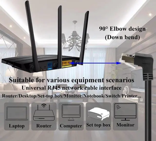 Connector A: 90 degree (Bend Down) RJ45 Cat 6 male connector