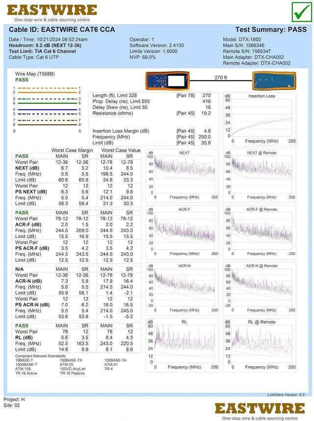 Maximum Cable LengthThe maximum recommended length for our CAT6 cable is around 270feet.