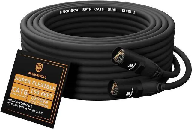PRORECK SFTP CAT6 Dual Shielded Ethernet Cable With EtherCON RJ45 Connectors, 150ft, High-Speed, Ideal for Pro Sound Systems, Studio, and Live Performances (PR-C6B-150)