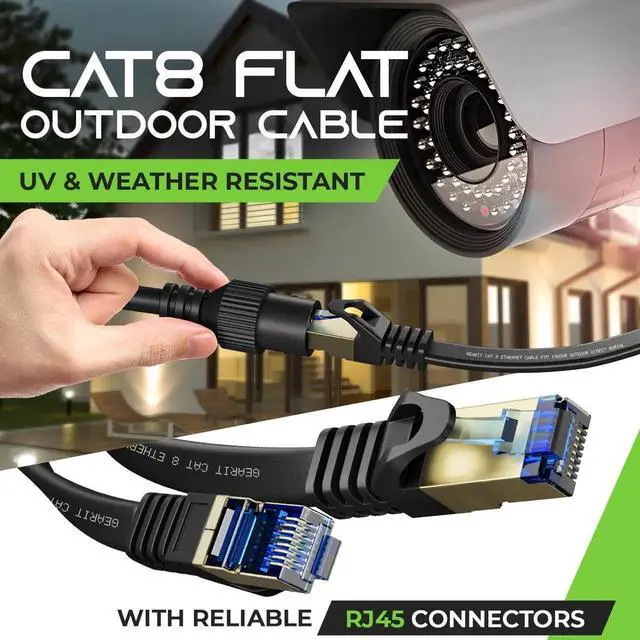 GEARit Cat 8 Outdoor Flat Ethernet Cable (40ft, Black) Direct Burial Rated LLDPE Jacket - Indoor Cat8 Shielded FTP 2000Mhz 40Gbps High Speed Gaming Computer Network RJ45 Snagless Patch Cord Internet
