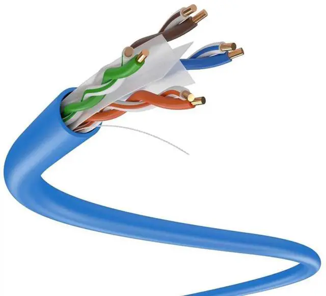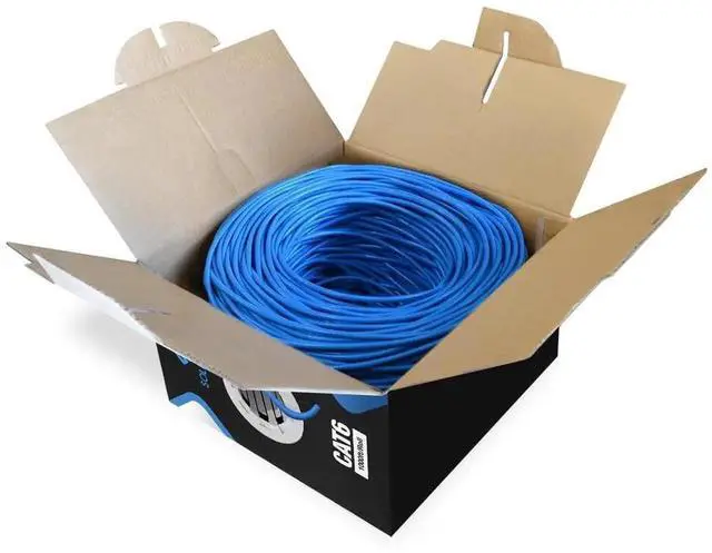 This high-performance CAT6 cable is expertly designed for the efficient transmission of data, voice, and video, making it an ideal solution for residential, commercial, and industrial networking applications. It features 4-pair unshielded twisted pair (UTP) construction with Copper Clad Aluminum (CCA) conductors, ensuring a cost-effective balance of performance and durability. Built with true 23AWG ( 0.57 mm) solid conductors, this CAT6 cable supports high-speed Gigabit Ethernet, making it perfect for applications such as streaming, video conferencing, cloud computing, and large data transfers. Each pair of wires is precisely twisted at varying rates per inch to minimize electromagnetic interference (EMI) and crosstalk, ensuring consistent signal integrity even over longer distances.