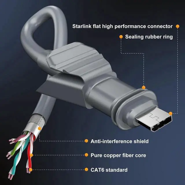 YaCeSyn Starlink Flat High Performance Cable, 75FT/23M Rectangular Satellite Replacement Cable Flat Cat6 Network Cable, Waterproof Extension Cord for Starlink Flat High Performance