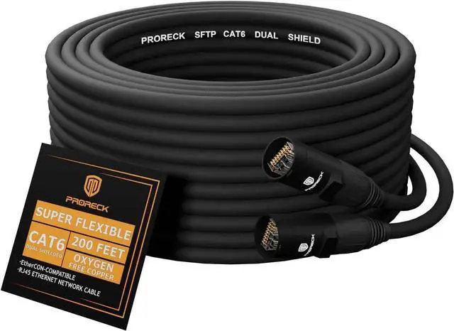 PRORECK SFTP CAT6 Dual Shielded Ethernet Cable With EtherCON RJ45 Connectors, 200ft, High-Speed, Ideal for Pro Sound Systems, Studio, and Live Performances (PR-C6B-200)