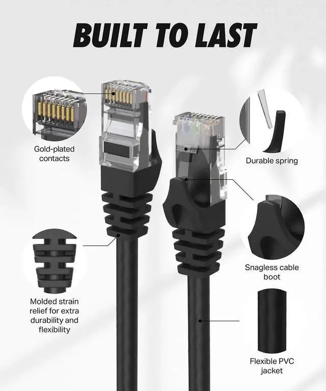 QUALITY CONTROL - Each Cat 6 internet cable 50 ft goes through rigorous testing to ensure a secure wired internet connection with exceptional speed and reliability.