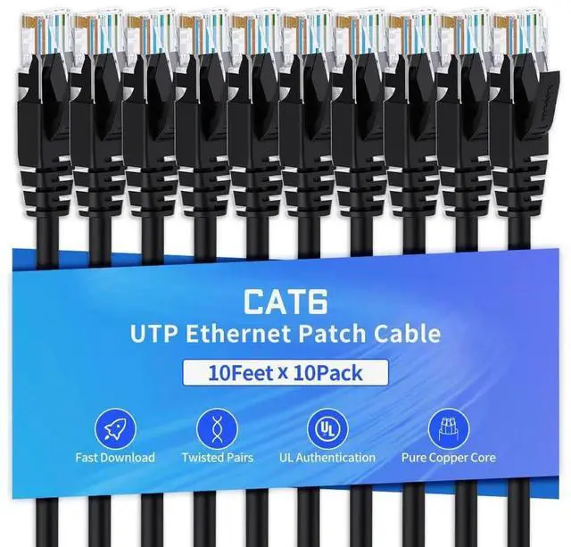 XANHAM Cat6 Ethernet Cable 10 Feet 10 Pack Network RJ45 Cat6 Internet Patch Cable, Unshielded, Black