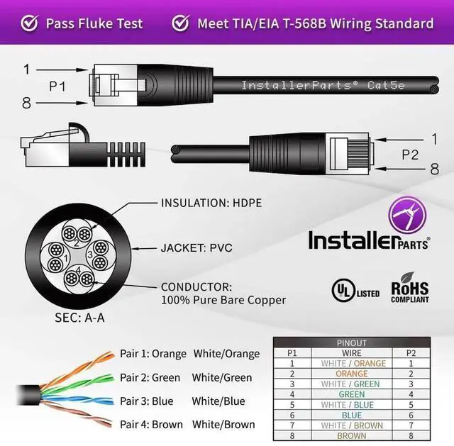 High Quality 100% Copper Wire: Installerparts Ethernet patch cables are made of 100% pure copper stranded wire and high quality jacket materials and feature a highly durable design at an affordable price.