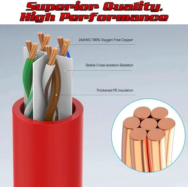 5 Feet Cat6 Patch Cables (12 Pack), Solid Pure Copper Patch Cord, Cat 6 Ethernet Cable, UTP Network, High Speed RJ45 Internet Cables, Compatible for Router, Switche, PC, Server, PS4/5, Xbox - Red