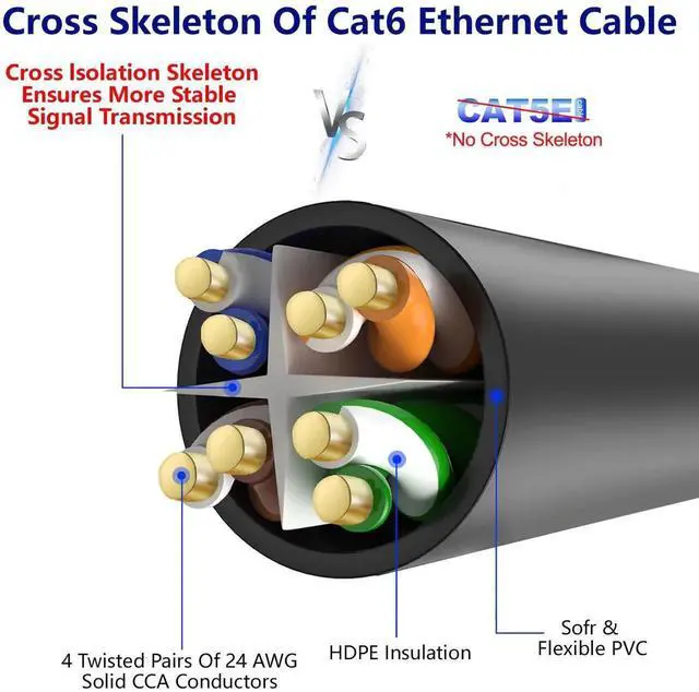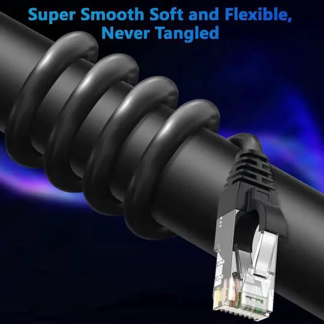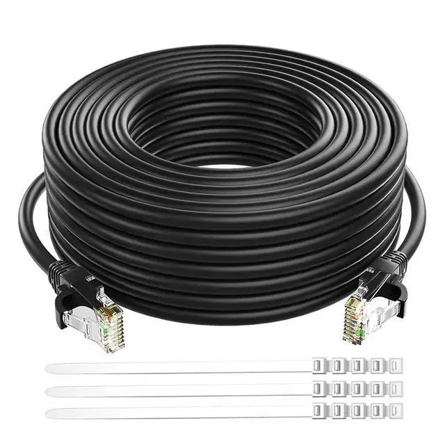 Adoreen Cat 6 Ethernet Cable 150 Ft-Black, Outdoor & Indoor Snagless Long Round RJ45 Network Cable, POE, Soft Flexible Gbps Internet LAN Computer Patch Cord for Router Modem Switch Fast Gaming+ Ties