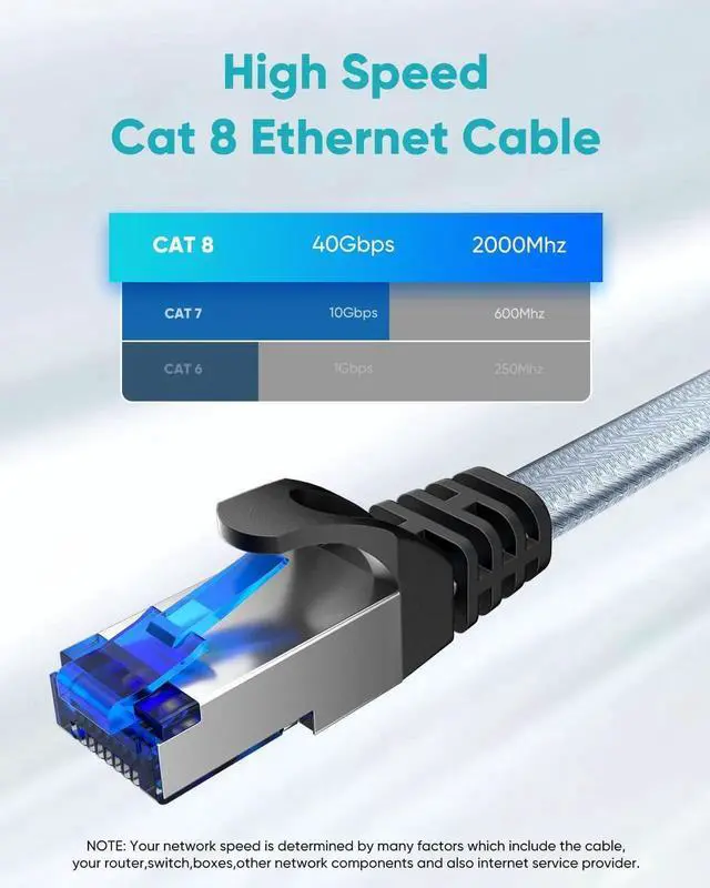BUSOHE Cat 8 Ethernet Cable 10 FT 10 Pack, Nylon Braided High Speed Heavy Duty Network LAN Patch Cord, 40Gbps 2000Mhz SFTP Shielded RJ45 Flat Internet Cable for TV/PC/Router, in Wall, Indoor, Outdoor