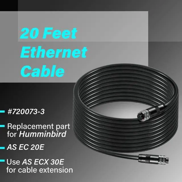 720073-3 20 Feet Ethernet Cable AS EC 20E Replace for Humminbird, Black Fit for HELIX, APEX, SOLIX and ONIX models