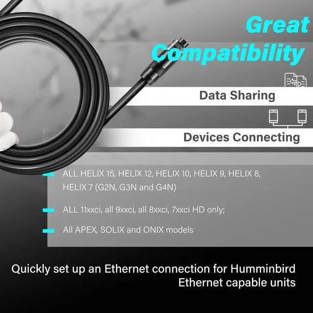 Good FunctionThis Ethernet Cable is deemed as a rather ideal choice to sharing data and inputs between two units. Will facilitates you to 1) connecting two Ethernet capable units together or 2) connecting a control head of/for Humminbird to an accessory 5 Port Ethernet Switch (AS ETH 5PXG), as part of a multi-unit Ethernet network.