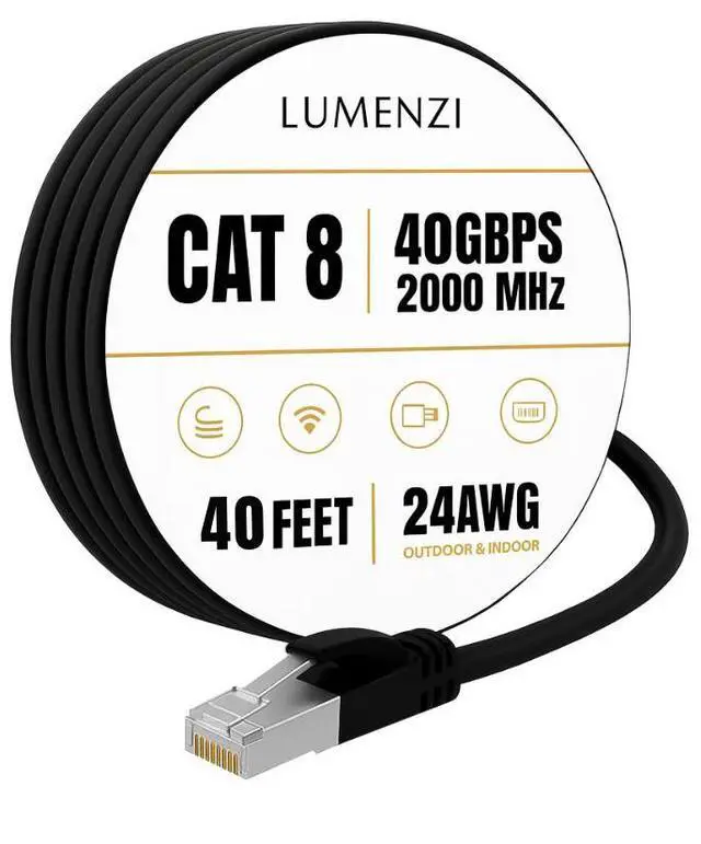 • Engineered with double-layer S/FTP shielding and solid copper wires, this Cat 8 cable maintains clean data transmission by blocking external interference and reducing crosstalk. The result is smoother performance, stronger signal integrity, and faster, more dependable internet speeds for all your connected devices.