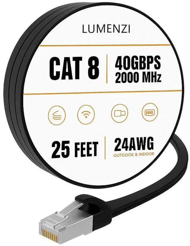 Enhance your internet setup with this high-performance Cat 8 flat Ethernet cable, engineered to provide fast and dependable wired connectivity for all your high-demand online tasks. With support for 2000 MHz bandwidth and blazing 40 Gbps data speeds, it ensures seamless 4K/8K streaming, competitive gaming, cloud-based work, and rapid large-file transferswithout lag or slowdowns.