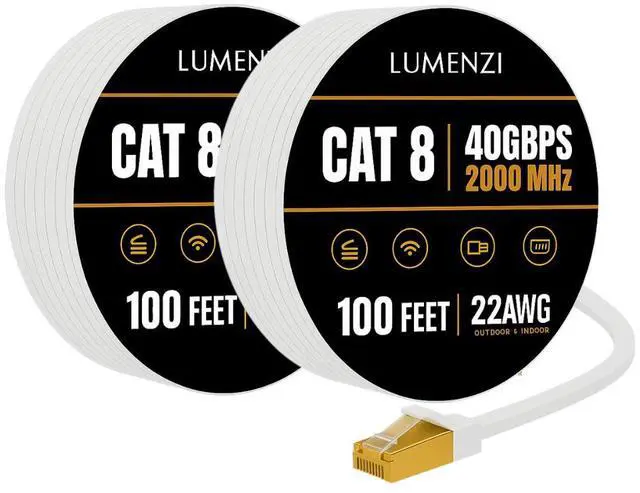 Enhance your internet setup with this high-performance Cat 8 flat Ethernet cable, engineered to provide fast and dependable wired connectivity for all your high-demand online tasks. With support for 2000 MHz bandwidth and blazing 40 Gbps data speeds, it ensures seamless 4K/8K streaming, competitive gaming, cloud-based work, and rapid large-file transferswithout lag or slowdowns.