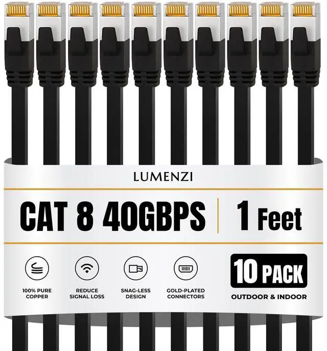 Enhance your internet setup with this high-performance Cat 8 flat Ethernet cable, engineered to provide fast and dependable wired connectivity for all your high-demand online tasks. With support for 2000 MHz bandwidth and blazing 40 Gbps data speeds, it ensures seamless 4K/8K streaming, competitive gaming, cloud-based work, and rapid large-file transferswithout lag or slowdowns.