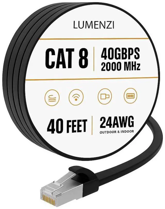 Enhance your internet setup with this high-performance Cat 8 flat Ethernet cable, engineered to provide fast and dependable wired connectivity for all your high-demand online tasks. With support for 2000 MHz bandwidth and blazing 40 Gbps data speeds, it ensures seamless 4K/8K streaming, competitive gaming, cloud-based work, and rapid large-file transferswithout lag or slowdowns.