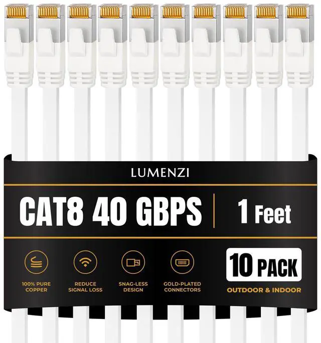 Enhance your internet setup with this high-performance Cat 8 flat Ethernet cable, engineered to provide fast and dependable wired connectivity for all your high-demand online tasks. With support for 2000 MHz bandwidth and blazing 40 Gbps data speeds, it ensures seamless 4K/8K streaming, competitive gaming, cloud-based work, and rapid large-file transferswithout lag or slowdowns.