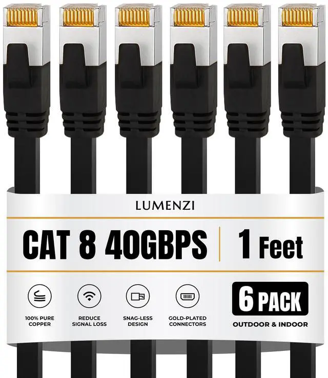 Enhance your internet setup with this high-performance Cat 8 flat Ethernet cable, engineered to provide fast and dependable wired connectivity for all your high-demand online tasks. With support for 2000 MHz bandwidth and blazing 40 Gbps data speeds, it ensures seamless 4K/8K streaming, competitive gaming, cloud-based work, and rapid large-file transferswithout lag or slowdowns.