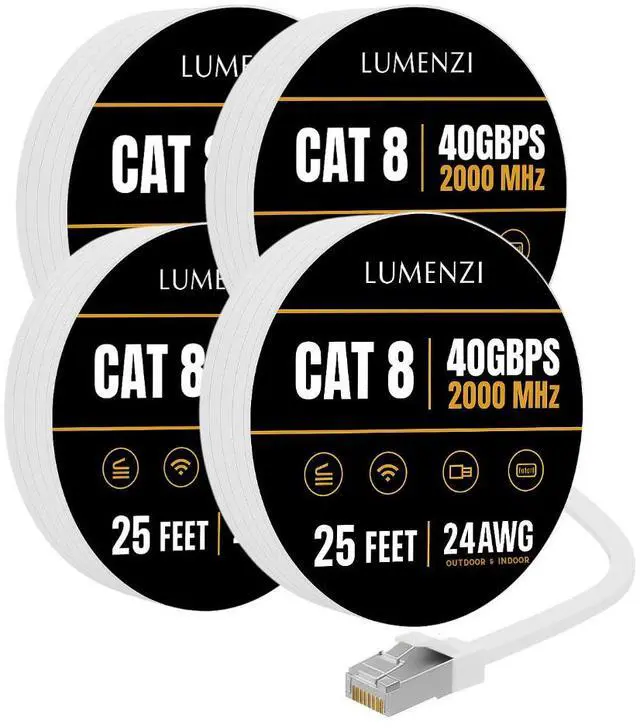 Enhance your internet setup with this high-performance Cat 8 flat Ethernet cable, engineered to provide fast and dependable wired connectivity for all your high-demand online tasks. With support for 2000 MHz bandwidth and blazing 40 Gbps data speeds, it ensures seamless 4K/8K streaming, competitive gaming, cloud-based work, and rapid large-file transferswithout lag or slowdowns.