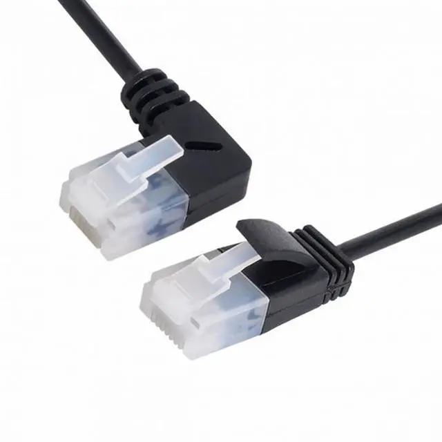 Ultra Slim Cat6 Ethernet Cable RJ45 Left Angled to Straight UTP Network Cable Patch Cord 90 Degree Cat6a Lan for Laptop Router TV BOX