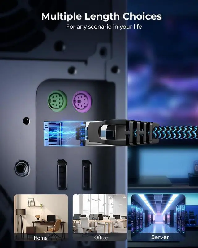 Wide Compatibility: This high speed RJ45 Cat 8 braided cable is compatible with Cat 7, Cat 6a devices. It is suitable for all devices with an RJ45 port, such as modems, smart TVs, hubs, modems, WiFi routers, network printers and more