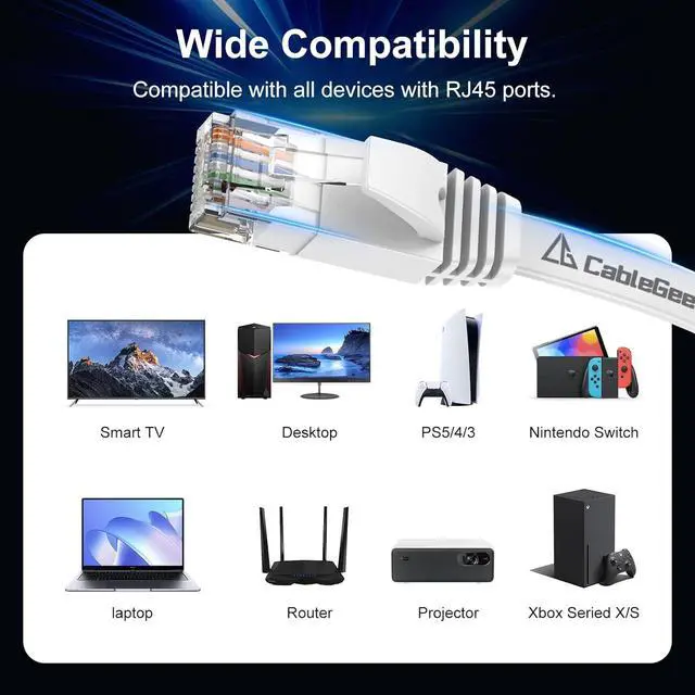 Wide Compatibility: CableGeeker Cat6 Ethernet cable connects all Gigabit LAN devicesPCs, servers, printers, routers, and more. Supports Gigabit 1000 BASE-T, 100 BASE-T, and 10 BASE-T, meeting Category 6 standards (TIA/EIA 568-C. 2)