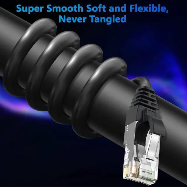 Our Advantages: Ultra-soft, flexible, smooth, tangle-free, and easy-to-bend Cat6 Ethernet cable----OD 5.8MM, PVC jacket with cross-shaped separator to reduce noise and ensure stable connectivity. Enhanced durability with bend and break resistance, ideal for complex and narrow space wiring, suitable for indoor/outdoor use---- no signal interference, meets 4K video/cloud server demands----Low-key color blends into the environment----Available in multiple lengths and colors