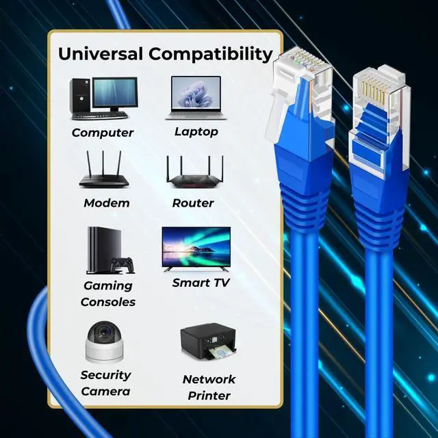 High Performance Ethernet cable CAT 5 Universal Compatibility - Cat5 8P8C modular RJ45 connectors Ethernet Patch Cable provides universal connectivity for LAN network cables components such as PCs, computer servers, printers, routers, switch boxes, network media players, NAS, VoIP phones, PoE devices, and more