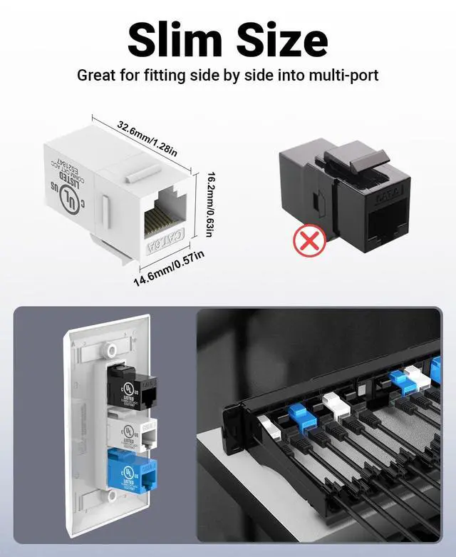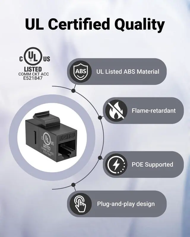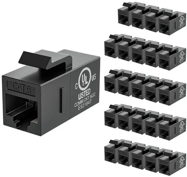 Package Content: 25 x CAT6 RJ45 Keystone Couplers, provide 18 months warranty for quality problems. With UL Listed (E521847), use it without concern.