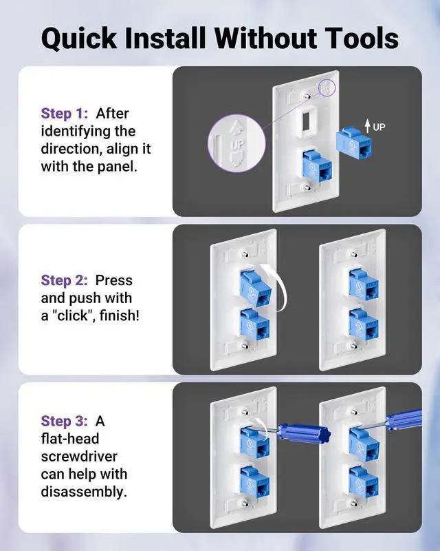 These RJ45 Ethernet Couplers fit all standard keystone wall plates and patch panels.