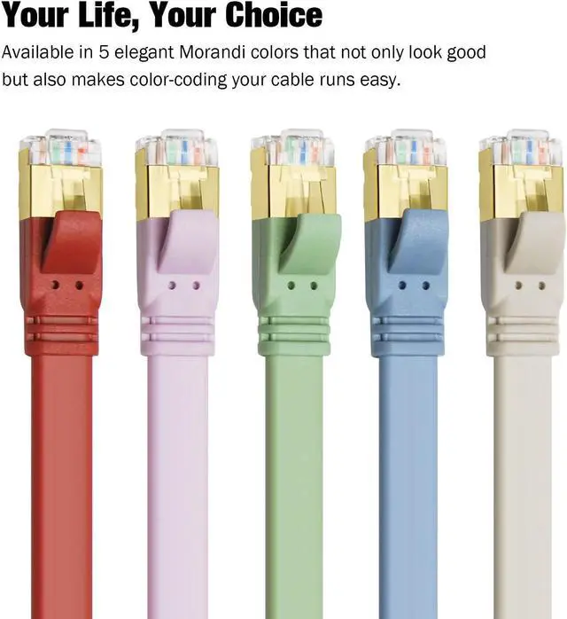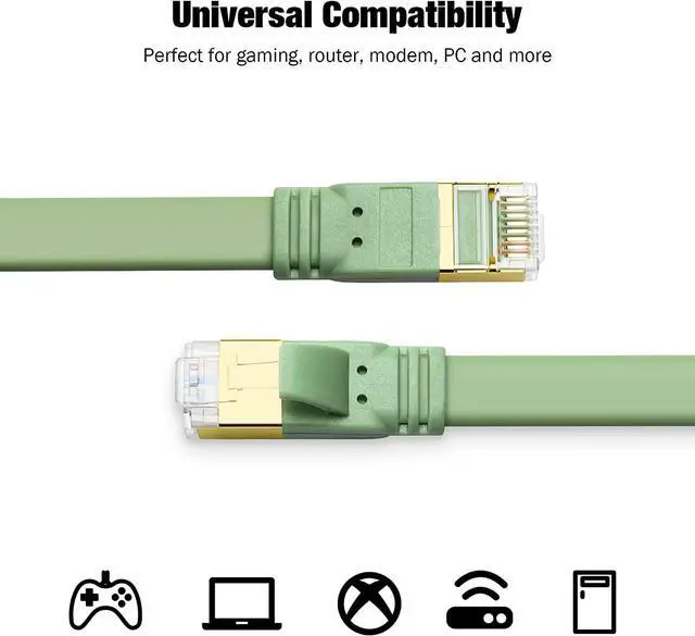 Universal CompatibilityCAT 8 Ethernet cable is backward compatible with CAT7/CAT6/CAT6e/CAT5e/CAT5 cable standard. With 2 gold-plated RJ45 connectors, perfect for connecting routers, switches, modems, IP cameras, PCs, network adapters, hubs, Xbox, smart TVs, laptops, and more. It is the best choice for smart homes and smart offices.