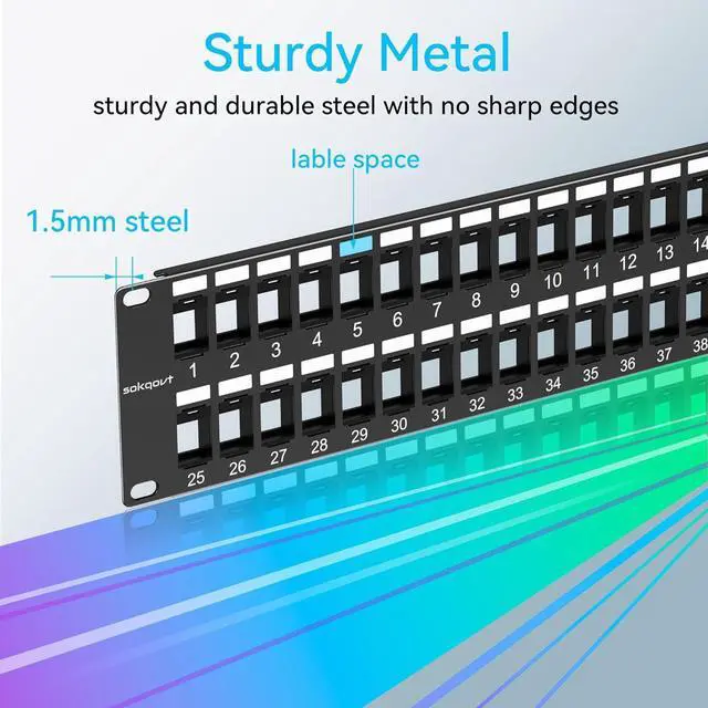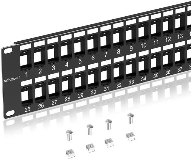 Sturdy Metal: 48 port module patch panel is made of sturdy 1.5 mm steel with no sharp edges. 4 screws and bolts were included in 24 patch panel for assembling it into the rack.