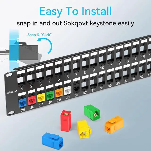 Easy To Install: 48 port keystone patch panel is easy to install on a network rack and snap in and out the keystone jacks, saved time in data center. Keystone patch panels are much better than punching patch panel and easy to reorganize when network grows or changes.