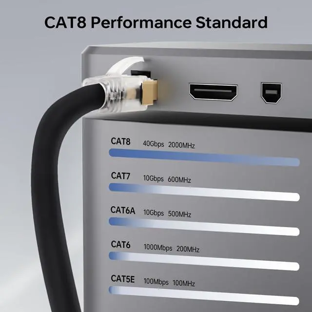 [ Lightning 40Gbps transmission ] Cat 8 lan cable support up to 2000MHz broadband, easy to deal with the game competition, daily office, streaming 8K videos, file download routing data multiple scenarios, no delay and no lag.