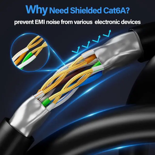 Shielded F/UTP: Shielded cat6 cable can prevent electromagnetic interference (EMI), ensuring stable performance in noisy environments such as near electrical wire, industrial environments. 150ft ethernet cable work well when facing a lot of electrical interference and required shielded network cable to protect the communication.