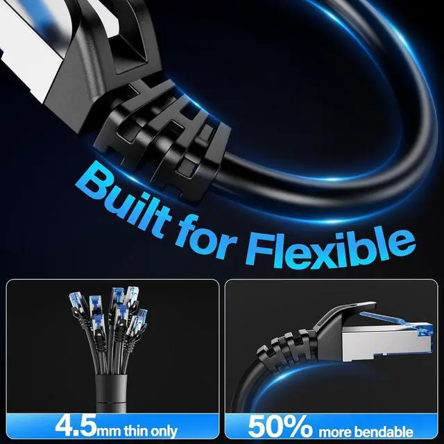 Ultra Flexible: Cat6a patch cable is 50% more bendable than standard cat6a cable with only 4.5 mm diameter. Cat6 a cable is slim design, which is more flexible than standard cat6 ethernet cable 150 ft, allowing easy to bend for smoother installation behind walls, under carpets, or in crowed conduits.