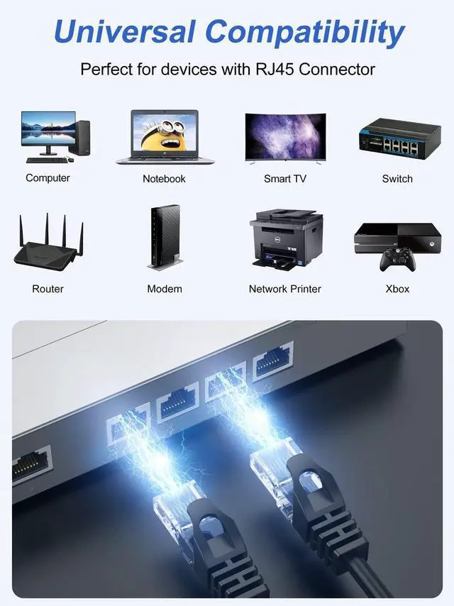 High-speed Cat6 Internet cableEthernet RJ45 cable supports up to 10Gbps gdata transmission speed and 250-500 MHz bandwidth. cat6 patch cord complies with TIA/EIA 568-C. 2, ensuring stable network speed (backwards compatible cat5, cat5e, cat6 ethernet cable)
