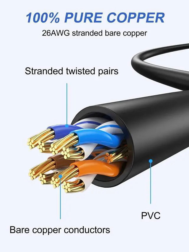 Upgraded StructureThis rj45 cable 6ft is specially designed with 26awg wire gauge. For general distance ethernet cable connection is faster and more stable than 24awg signal