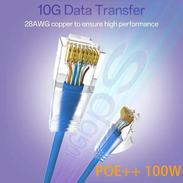 Data Transfer: Cat6a patch cable is built with high quality 28AWG 100% copper and is well constructed to ensure high performance 10G data transfer. CAT6 thin ethernet cable is comply with ANSI/TIA 568-2. D ensuring a reliable connection to your network.