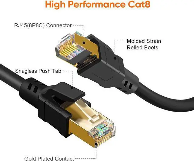 Double Shielded: Overall aluminum foil shield and braided shield structure allow the Cat8 ethernet cable high anti-interference and less signal attenuation. Protect against EMI/RFI interference, improved quality in twisting of the wires provides better protection from crosstalk, noise, and interference that can degrade the signal quality.